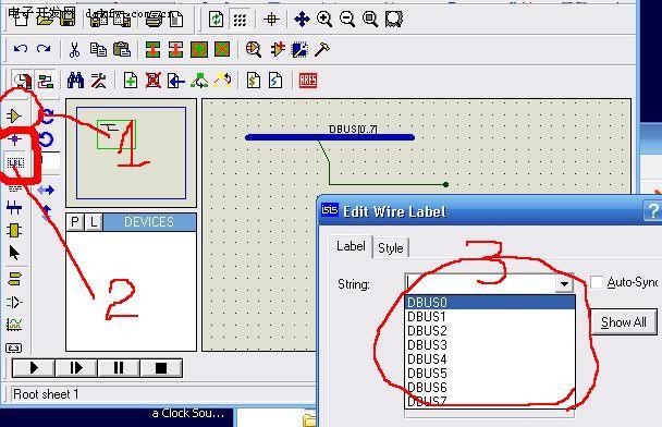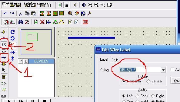 在前幾天的一個帖子中,有同學提到Proteus所帶示例工程中的總線連接方式。這種方式相較Protel的方法有其特別之處,通過下拉列表方式,在通過總線進行邏輯連接時提醒你,該總線有哪些已經定義的電器連接可用,防止單純用標號時可能產生的錯誤。下面請跟我學習這種使用總線的方法,畫一條叫做DBUS的總線,該總線中包括DBUS0~DBUS7共8根連接線: