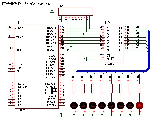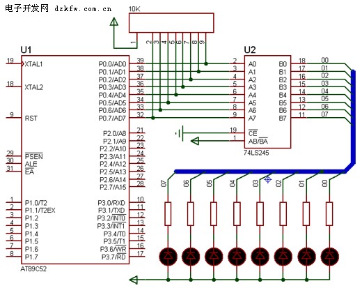 以前看的多數的Proteus的資料都是講Proteus和Keil聯合調試的,所以一直有個錯覺,就是用Proteus仿真單片機必須要用Keil。經過今天的實戰才明白原來不是這樣,只要在MCU的屬性中的"Program File"里選中用Keil或是其他什么軟件生成的HEX文件(即要寫入真正的板子上MCU的程序)即可,這樣就相當于在電路里放了一塊寫好程序的 MCU。連好外圍器件后就可以仿真了。