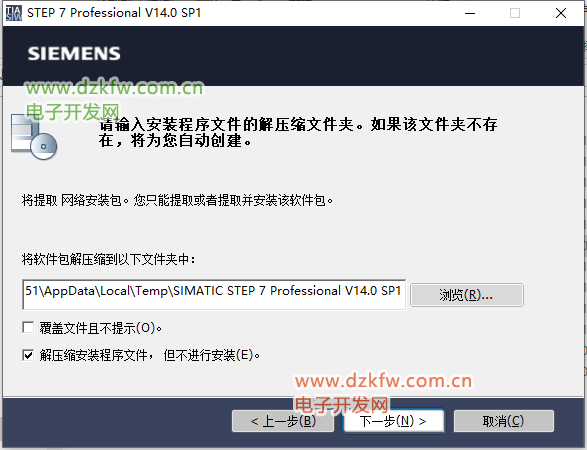 接下來,建議安裝順序為先安裝STEP 7,再安裝WinCC,最后在安裝PLCSIM。打開STEP 7文件夾如下。選中紅色方框中的SP1點擊進行安裝。首先會提示進行解壓,然后只需按照安裝提示下一步完成安裝即可。同理按照同樣步驟完成WinCC和PLCSIM軟件的安裝。