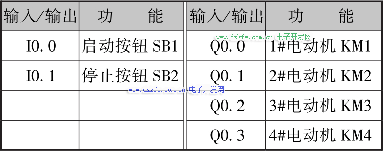 1.PLC 控制任務說明 用按鈕控制四臺電動機:按下啟動按鈕,先啟動第一臺電動機后,每隔 5s 啟動一臺電動機,直至第四臺電動機啟動完畢;按下停止按鈕,四臺電動機同時停止運轉。
