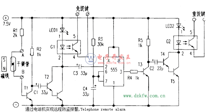 關鍵字:通過電話機實現遠程防盜報警,電話機報警電路圖,防盜