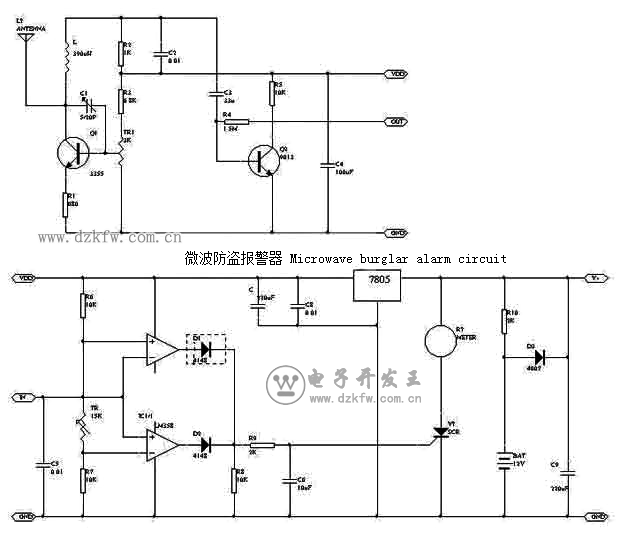 微波防盜報警器 Microwave burglar alarm circuit