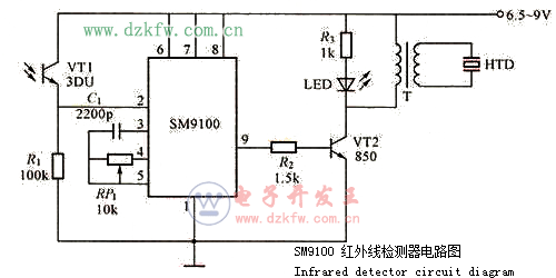 SM9100 紅外線檢測器電路圖 Infrared detector circuit diagram