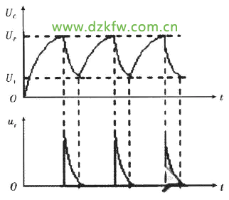 e為發射極,b1、 b2分別為第一基極和第二基極。圖4中Q1與C5、R26、R24、R23利用晶體管Q1負阻特性構成震蕩電路。負阻特性就是當晶體管發射極電流增加時,發射極電壓VE反而減小。工作狀態通電時 ,電容C5上的電壓為零,BT35管子截止,+12 V電源通過電阻R26對C5充電,隨時間增長電容C5,上電壓逐漸增大;當增大至Ueb1峰點電壓Up后,管子進入負阻區,輸入端等效電阻迅速減小,此時C5迅速放電,電流Ie隨之減小,當Ueb1減小到谷點電壓Uv后,管子截止;電容C5又開始充電。上述過程循環產生振蕩。電容上電壓的測試波形如圖7所示。