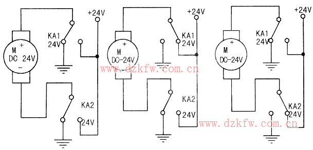 下圖(c)中,當要控制電機往相反方向(反轉)時,使繼電器KA2動作,KA1不動作。直流電源通過KA2的動合觸點加到開窗電機的負端,開窗電機的正端通過KA1的動斷觸點接地,實現了電機的相反方向的旋轉。