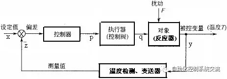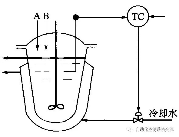其中,被控對象:反應器;被控變量:反應器內的溫度;操縱變量:冷卻水流量。