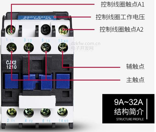 控制線圈為A1、A2觸點,用于控制主觸點的開合。