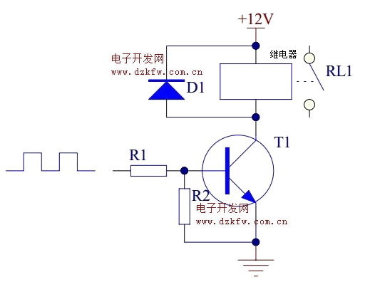 當晶體管用來驅動繼電器時,推薦用NPN三極管。具體電路如下: