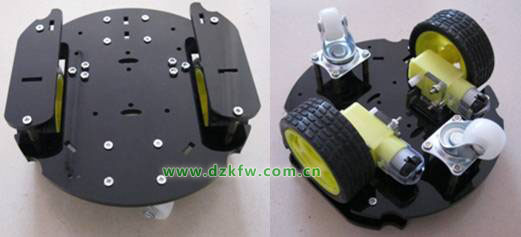 對于不太追求速度的場合應優先選用減速直流電機,如足球機器和滅火機器人等追求功能而對速度要求不高的場合,如圖3,此車的傳動比通常為幾十到幾百左右。一般對同一型號的減速電機,廠家都會提供多種傳動比的產品提供給用戶,應根據需要加以選擇。