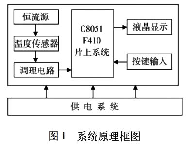 Pt100測溫系統以C8051F410片上系統為控制核心,系統的原理框圖,如圖1 所示.包括C8051F410片上系統恒流源驅動電路信號采集電路信號調理電路顯示電路按鍵電路以及電源電路7個組成部分。