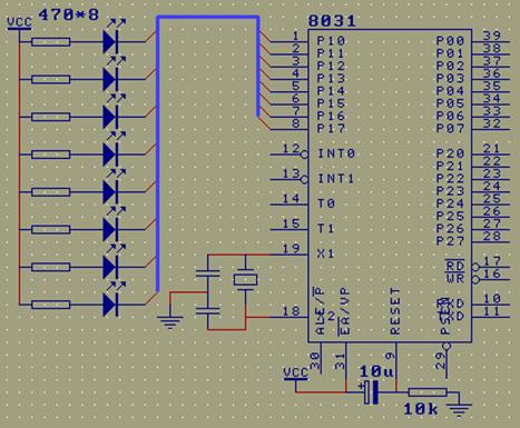 4、 EA管腳:EA管腳接到正電源端。 至此,一個單片機就接好,通上電,單片機就開始工作了。