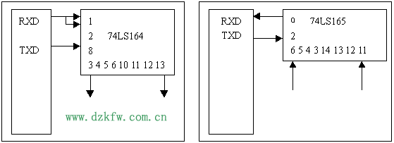 方式0為移位寄存器輸入/輸出方式。可外接移位寄存器以擴展I/O口,也能外接同步輸入/輸出設備。8位串行數據者是從RXD輸入或輸出,TXD用來輸出同步脈沖。