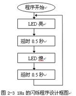 完成發(fā)光二極管以1Hz的閃爍程序設(shè)計框圖如圖2-3所示。