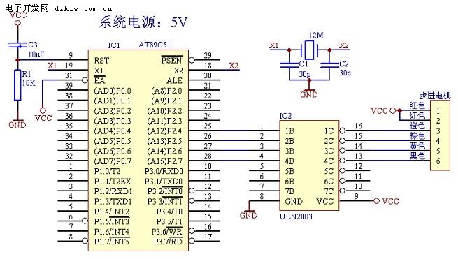 ULN2003的驅動直接用單片機系統的5V電壓,可能力矩不是很大,大家可自行加大驅動電壓到12V。