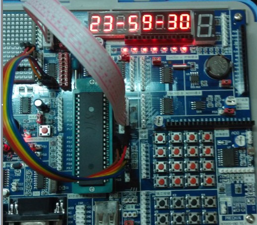 在懂了數碼管的工作原理和控制原理之后,我們現在可以正式編寫時鐘程序了,所謂時鐘就是幾點幾分幾秒用八位數碼管顯示出來,只是它會跳動顯示的數值隨時間變化而變化。一開始我使用的延遲寫的時鐘,每過1s數碼管的秒加一,通過寫的程序運算之后分加一,再后時加一。