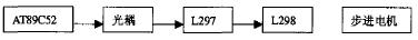 文中所控制的步進電機是四相單極式35BY48HJ120減速步進電動機。本文所設計的步進電機控制驅動器的框圖如圖2所示。它由AT89C52單片機、光電耦和器、集成芯片L297和L298組成。AT89C52是美國ATMEL的低電壓、高性能8位CMOS單片機。片內置8K字節可重復擦寫的