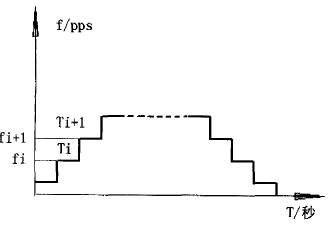 在該電路中,將P1.0口設為電機開始按鈕,P1.1,P1.2,P1.3為速度選擇按鈕。速度由低到高,P1.4為電機停止按鈕。并設三檔速度的最高速度依次為500pps、1000pps、2000pps 。RXD,TXD 已由MAX232電平轉換接出串口。此外,步進電機其啟動,停止的頻率較低,一般在100-250Hz之間,而最高運行頻率要求較高。通常為1-3kHz,為使其在啟動、運行和停止整個過程中,既不會失步,又能夠盡快精確地達到目標位置,運行速度都要有一個加速一恒速減速的過程。這里采用常用的離散辦法來逼近理想的近似梯形的升降速曲線,如圖5所示。即利用定時器中斷方式來不斷改變定時器裝載值的大小.