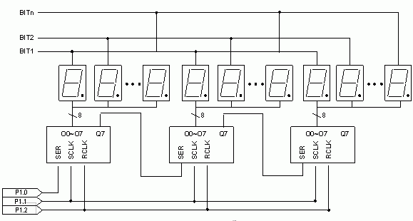 N位LED顯示要求N個74HC595芯片及N+3條I/O口線,占用資源較多,而且成本較高。這對于多位LED顯示很不利。