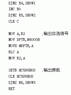 SETB RCK_595 ;上升沿將數(shù)據(jù)送到輸出鎖存器