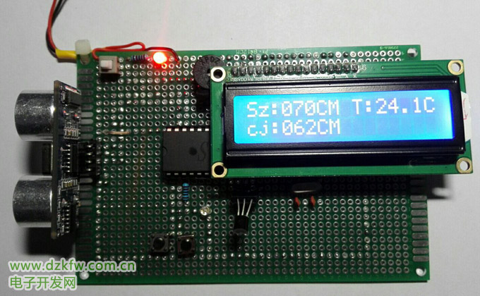 可以測當前距離,當超過閾值距離時,蜂蜜器報警,并且實時顯示溫度數據,51單片機超聲波測距C語言程序