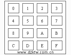 (1)如圖14.2所示,用單片機的并行口P3連接4×4矩陣鍵盤,并以單片機的P3.0-P3.3各管腳作輸入線,以單片機的P3.4-P3.7各管腳作輸出線,在數碼管上顯示每個按鍵 “0-F”的序號。