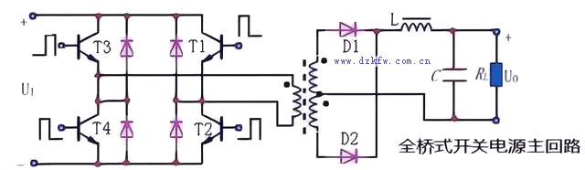 這種電路結構的特點是:由四只相同的開關管接成電橋結構驅動脈沖變壓器原邊。