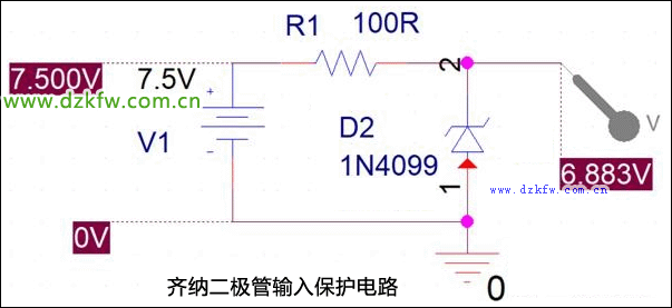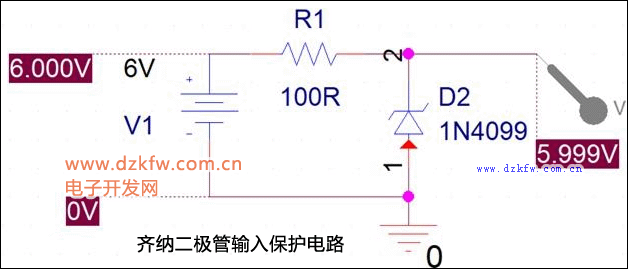 3、使用齊納二極管的過(guò)壓保護(hù)電路