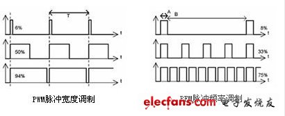 PWM (pulse width modulation) 脈沖寬度調制:控制頻率恒定而脈沖寬度可變。這種調制方式應用得最廣泛。