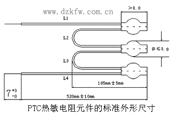 PTC熱敏電阻的選型取決于電機的絕緣等級。元件的標準外形尺寸見圖。通常按比電機絕緣等級相對應的極限溫度低40℃左右的范圍選擇PTC熱敏電阻的居里溫度。例如,對于B1級絕緣的電機,其極限溫度為130℃,應當選居里溫度90℃的PTC熱敏電阻。( 過熱保護用PTC熱敏電阻)