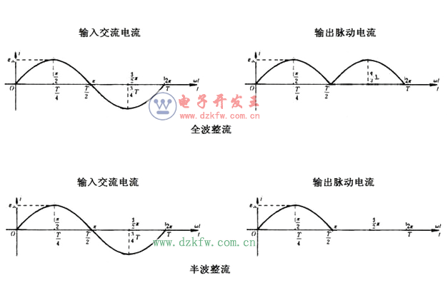 全波整流:就是對交流電的正、負半周電流都加以利用,輸出的脈動電流,是將交流電的負半周也變成正半周,即將50Hz的交流電流,變成100Hz的脈動電流。