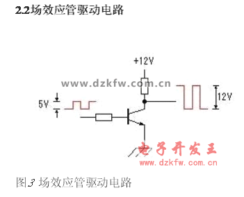 由于方波信號(hào)發(fā)生器輸出的振蕩信號(hào)電壓最大振幅為0~5V,為充分驅(qū)動(dòng)電源開關(guān)電路,這里用TR1、TR2將振蕩信號(hào)電壓放大至0~12V.如圖3所示。