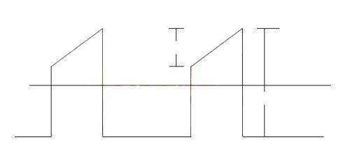 第六步,確定次級繞組的參數,圈數和線徑.記得原邊感應電壓吧,這就是一個放電電壓,原邊就是以這個電壓放電給副邊的,看上邊的圖,因為副邊輸出電太為5V,加上肖特基管的壓降,就有5.6V,原邊以80V的電壓放電,副邊以5.6V的電壓放電,那么匝數是多少呢,當然其遵守變壓器那個匝數和電壓成正比的規律啦.所以副邊電壓=NS*(UO+UF)/VOR,其中UF為肖特基管壓降.如我這個副邊匝數等于88*5.6/80,得6.16,整取6匝.再算副邊的線徑,當然也就要算出副邊的有效值電流啦,副邊電流的波形會畫嗎,我畫給大家看一下吧畫的不太對稱,沒關系,只要知道這個意思,就可以了.有突起的時間是1-D,沒有突起的是D,剛好和原邊相反,但其KRP 的值和原邊相同的這下知道了這個波形的有效值是怎么算的了吧,哦,再提醒一句,這個峰值電流就是原邊峰值電流乘以其匝數比,要比原邊峰值電流大數倍哦.