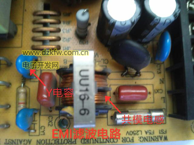 EMI濾波電路是 市電進入電源之后的首先經過的電路,其主要作用就是阻礙電網到電源以及電源到電網的EMI干擾,同時也可以起到抑制突波、保護電源的作用 ,主要元件是 X電容,Y電容,共模電感。