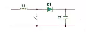 上圖為另外一種最基本的開關變換器拓撲——boost變換器拓撲。當開關管導通時,輸入電壓對電感L1提供能量進行儲能,同時負載由電容C1來提供能量;當開關判斷時,輸入電壓與電感L1通過二極管D1共同為負載提供能量,同時電容C1充電以補充在開關管判斷期間損耗掉的能量。