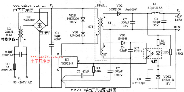 20W/12V輸出開關電源電路圖 12V開關電源電路