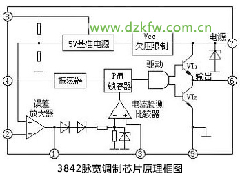 ⑦腳是直流電源供電端,具有欠、過壓鎖定功能,芯片功耗為15mW;