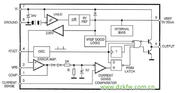 ⑧腳為5V 基準電壓輸出端,有50mA 的負載能力。