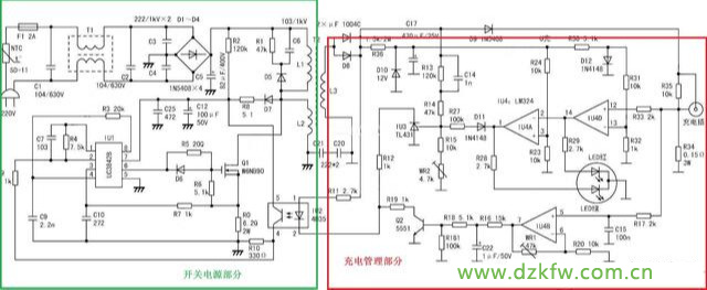 電瓶車充電器電路圖講解(電動車充電器的電路看起來難,其實拆分來看很容易看懂)