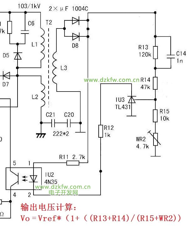 uc3842開關電源電路圖_開關電源各功能電路_電壓反饋環、短路保護