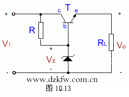 射極輸出電路( 如圖10.13)的輸入是固定值的V,因而輸出電壓V=V-V也為固定值。當(dāng)電網(wǎng)電壓波動(dòng)時(shí),由于V基本不變,所以V也基本不變,V的變化由V調(diào)節(jié),因此三極管被稱(chēng)為調(diào)整管。當(dāng)R變化引起I的變化時(shí),只要△I在穩(wěn)壓管的正常范圍內(nèi),V就基本保持不變。即V基本恒定。