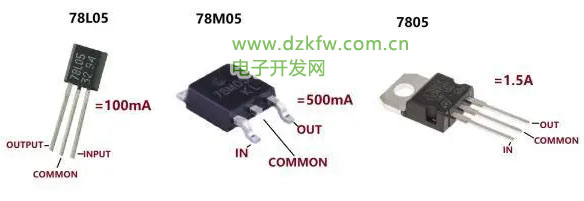 負載電流是否超出7805的最大正常輸出電流,7805不同封裝代號其最大輸出電流不同,78L05的最大輸出電流為100mA,78M05的最大輸出電流為500mA,代號為7805的最大輸出電流為1.5A。