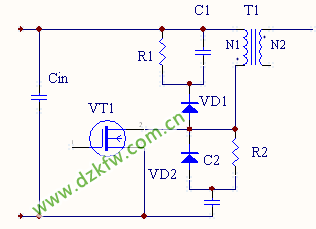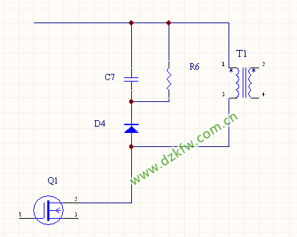 其主要作用是:可以吸收過電壓尖峰,減小過電壓危險,防止MOS管Q1擊穿。