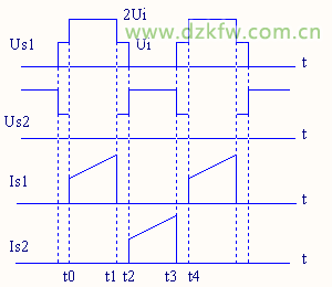 1)t0—t1:S1導通,D1導通,電流流過W2—D1—C—R 電流上升;