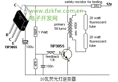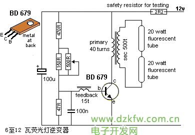 該電路將驅動一個40瓦或兩個20瓦串聯的熒光燈。