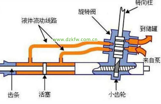 液壓助力,顧名思義,就是在機械轉向原有的結構上面加裝一套液壓助力系統,它的構造是這樣的: