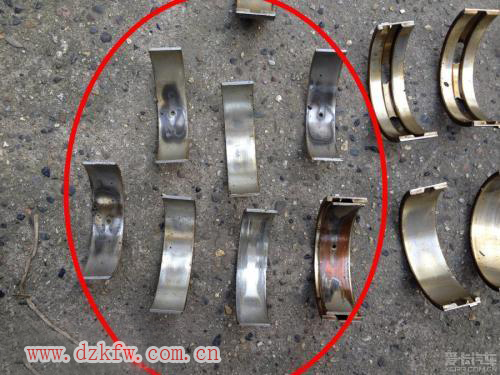 ⑥軸承合金質(zhì)量不合要求,合金與底瓦沒(méi)有能完全緊密貼合在一起。⑦發(fā)動(dòng)機(jī)剛起動(dòng)尚沒(méi)有充分進(jìn)行潤(rùn)滑時(shí),就以很高的速度并滿負(fù)荷運(yùn)轉(zhuǎn);蛘唛L(zhǎng)期超負(fù)荷運(yùn)轉(zhuǎn),致使機(jī)器溫度過(guò)高。