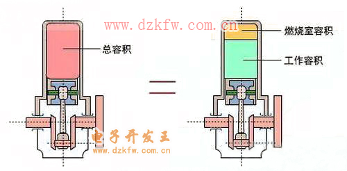 燃燒室的邊界由汽缸蓋、活塞和汽缸壁構成。到達上止點位置時,燃燒室即壓縮室。到達下止點位置時,燃燒室容積為壓縮室容積和排量之和。