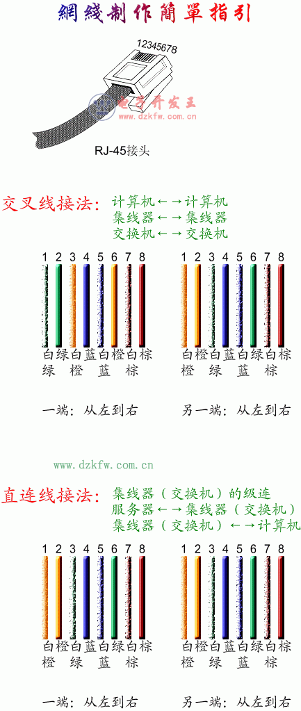 這種接線方法也是應用于集線器(交換機)與工作站計算機之間的連接,也就是“直連線”所應用的范圍。