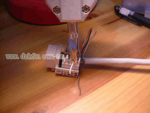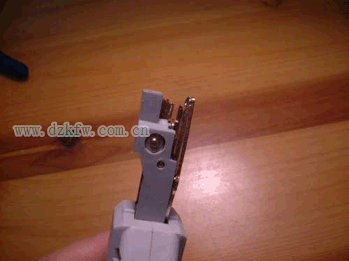 下面開始打線,用工具壓住模塊和線,用力壓下去,將線卡在模塊里面,并把多余的先頭剪掉。