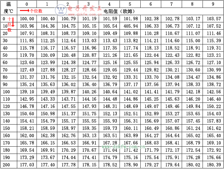 -200到0度:Rt=R0[1+A*t+Bt^2+C(t-100)^3] R0是0度是鉑電阻的阻值 A=3.940*乘10負(fù)3次冪。